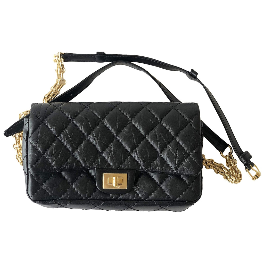 Chanel 2.55 Black Leather clutch bag for women. Used condition.