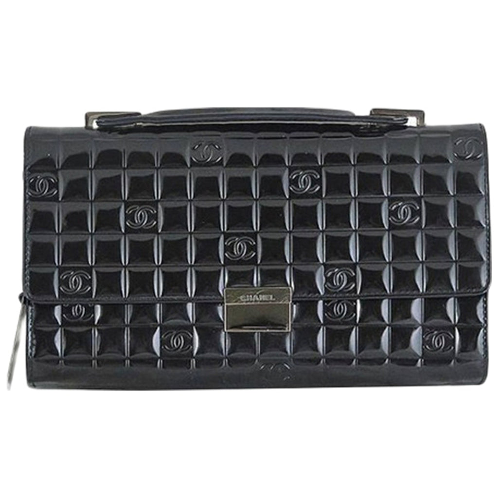 Chanel black patent leather clutch bag