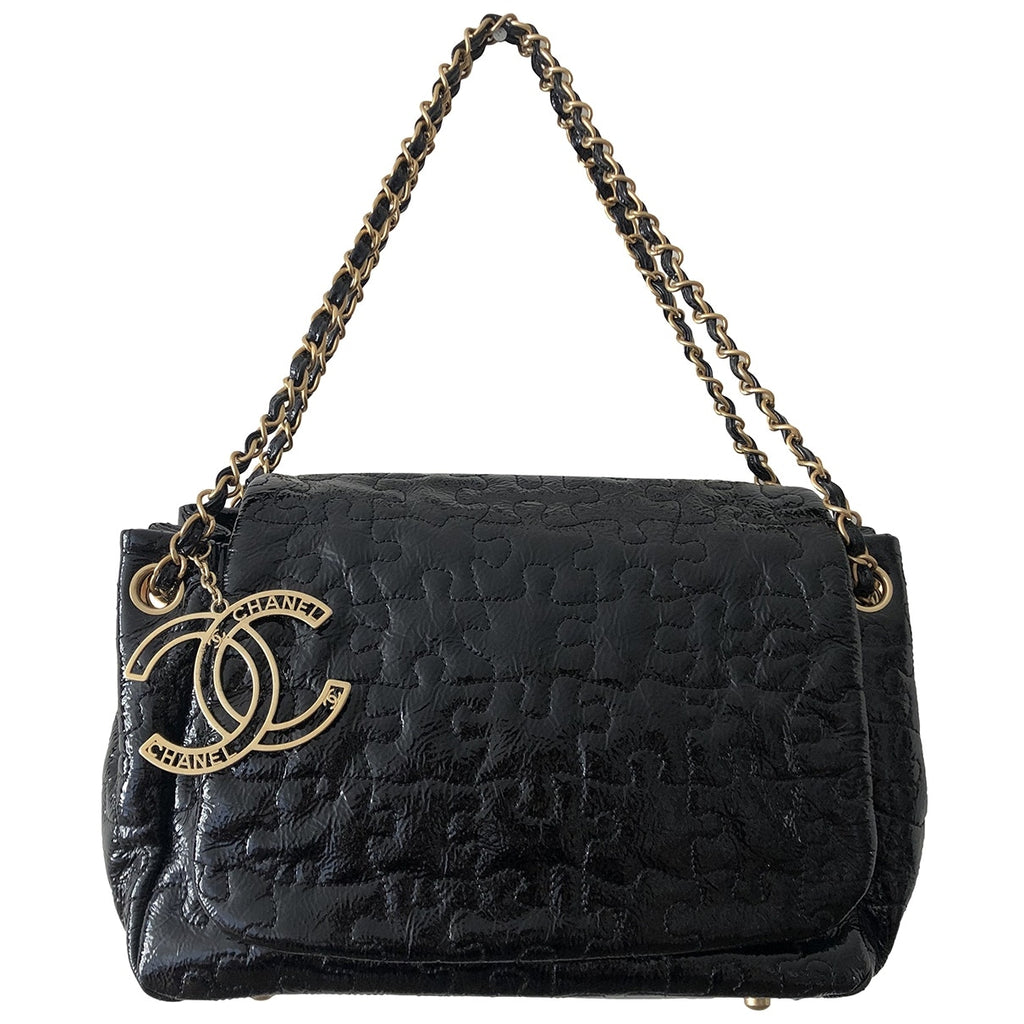 Chanel black patent leather handbag