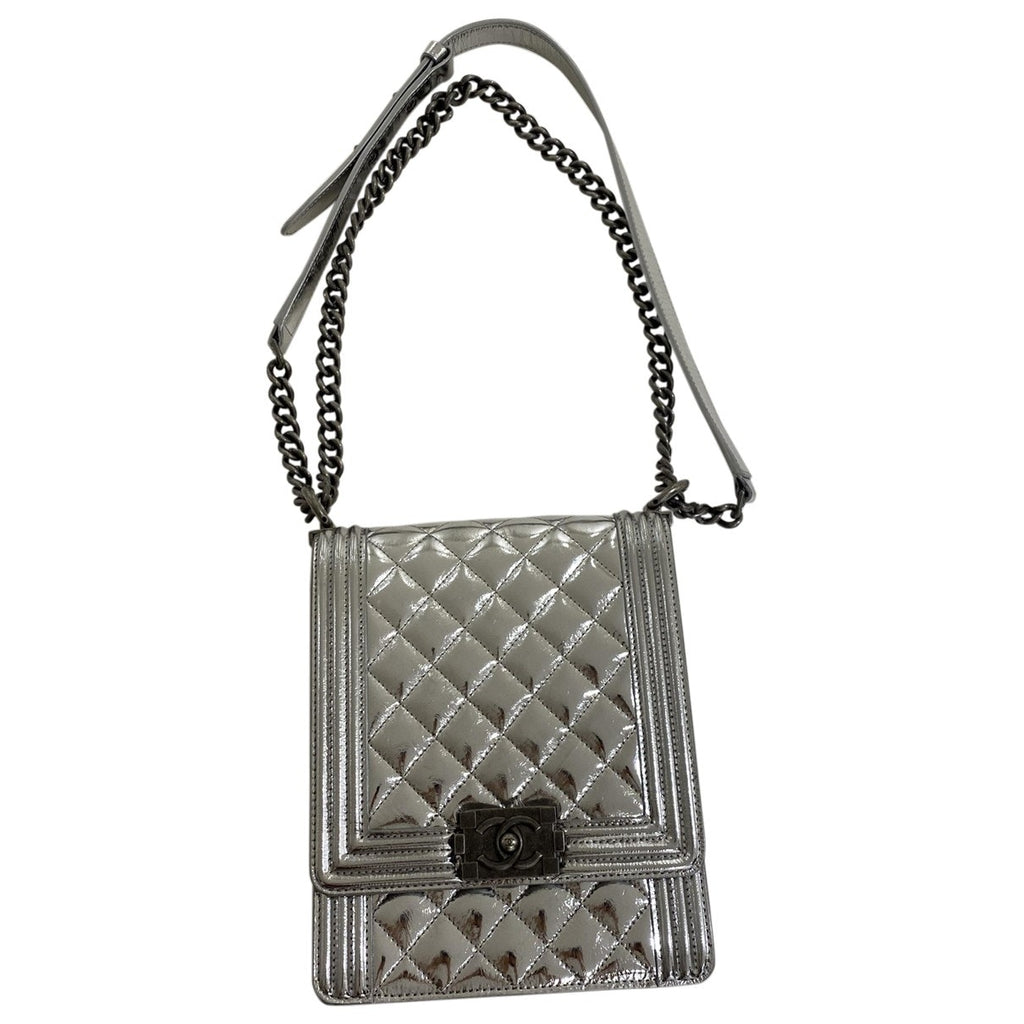 Chanel Boy Silver Patent leather handbag for women. Used condition.