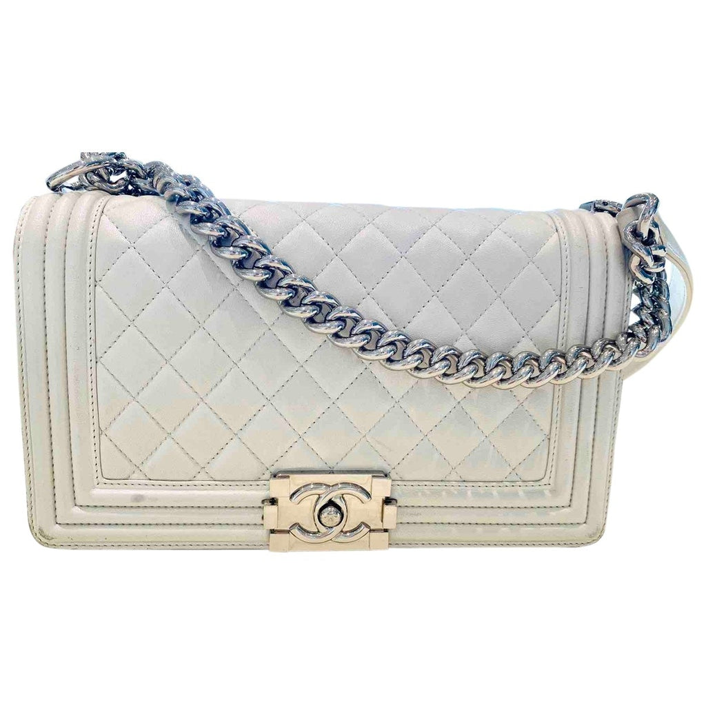 Chanel Boy White Leather handbag for women. Used condition.