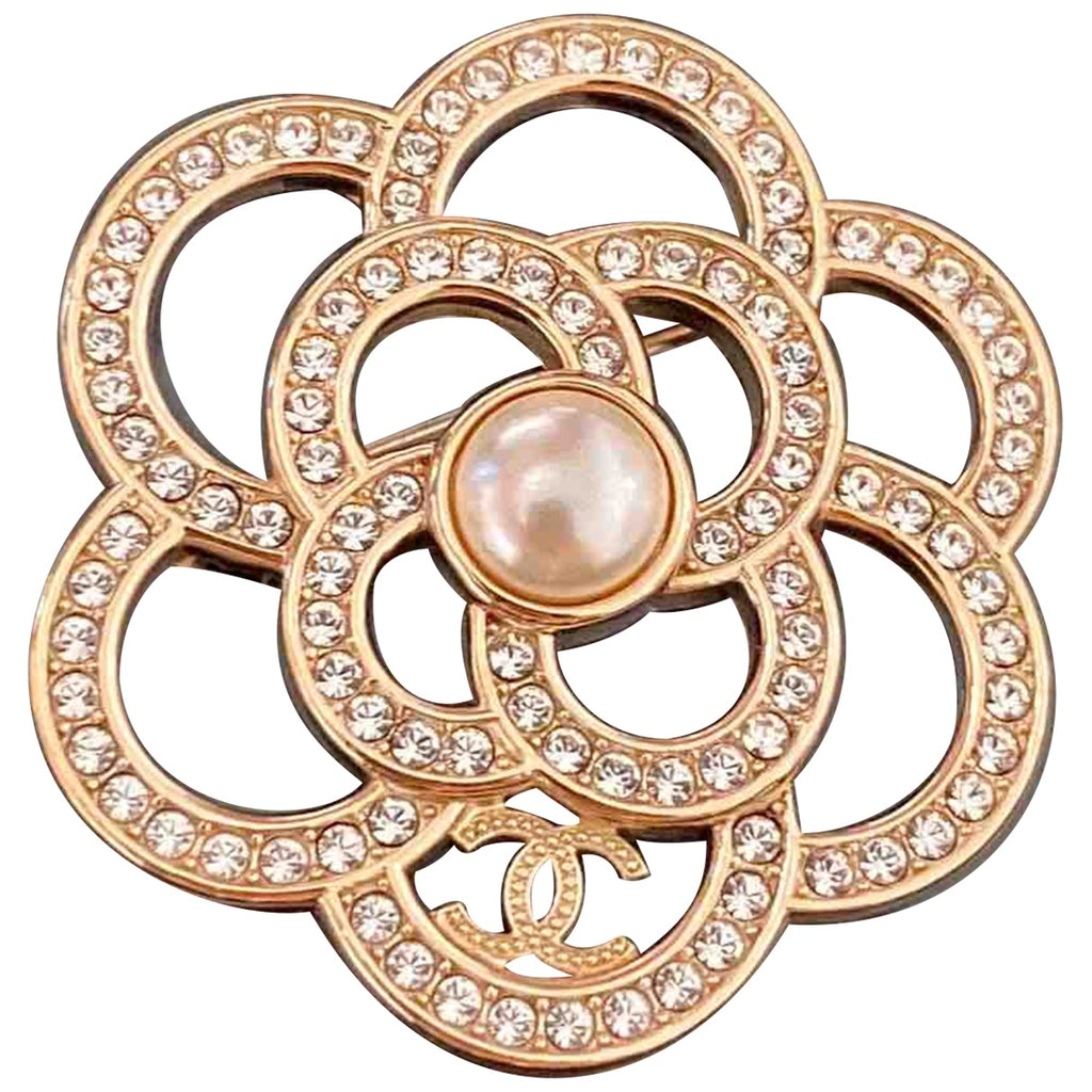 Chanel Camélia Gold Plastic pins & brooches for women. Used condition.