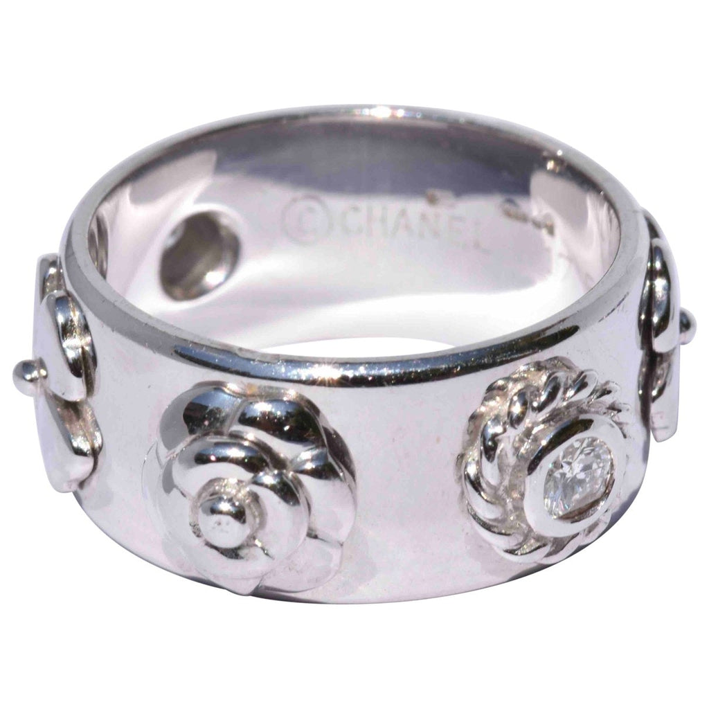 Chanel Camélia Silver White gold rings for women. Size: 55 EU. Used condition.