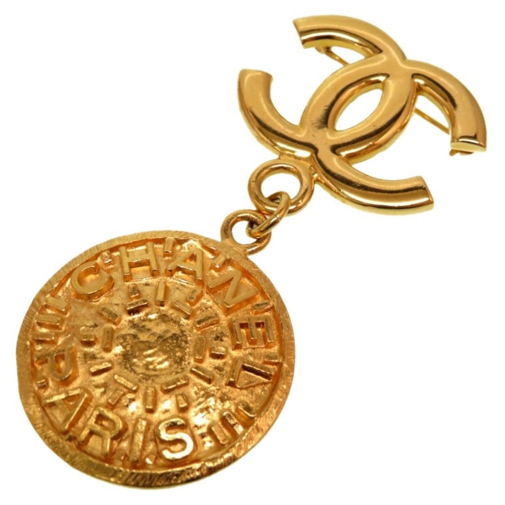 Chanel CC Gold Metal pins & brooches for women. Used condition.