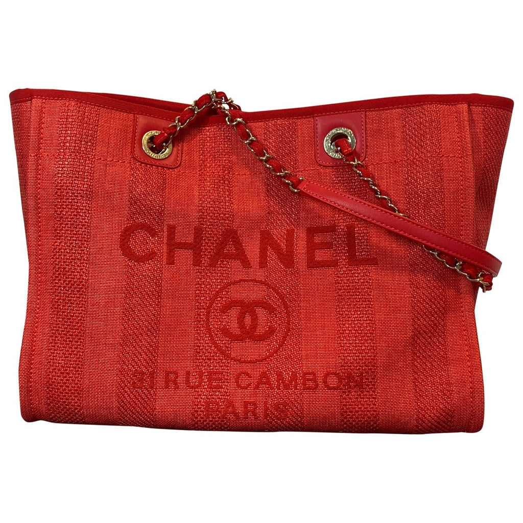 Chanel Deauville Red Cloth handbag for women. Used condition.