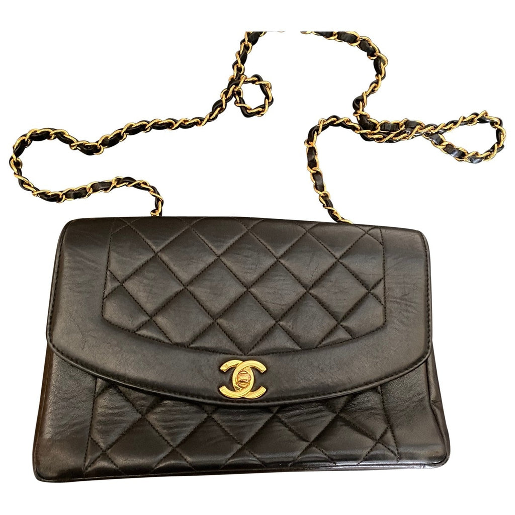 Chanel Diana Black Leather handbag for women. Used condition.