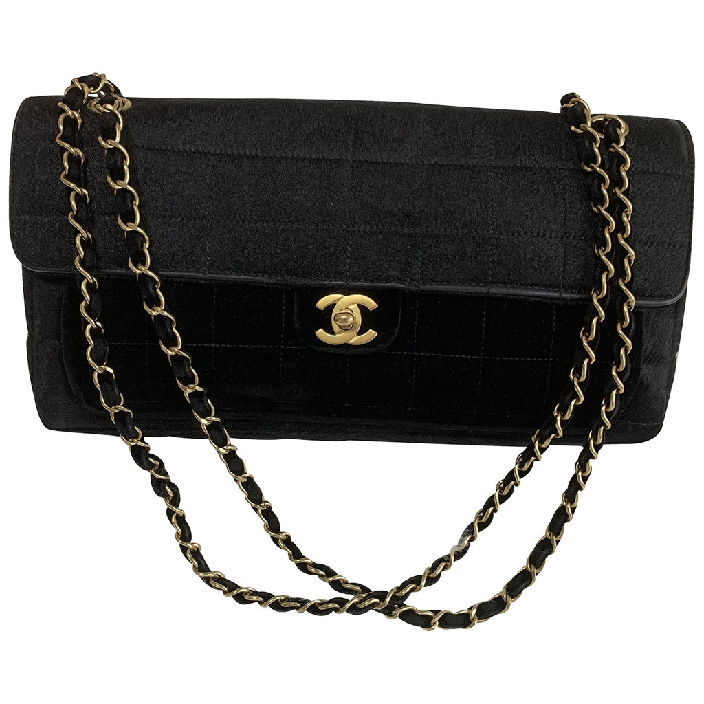 Chanel East West Chocolate Bar Black Suede handbag for women. Used condition.