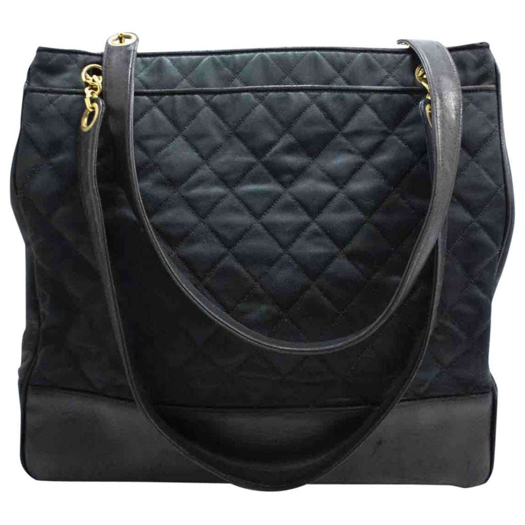 Chanel Petite Shopping Tote Black Cotton handbag for women. Used condition.