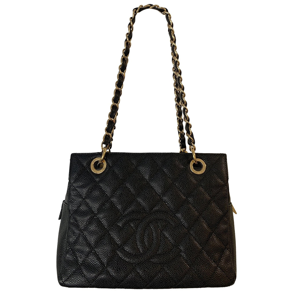 Chanel Petite Shopping Tote Black Leather handbag for women. Used condition.