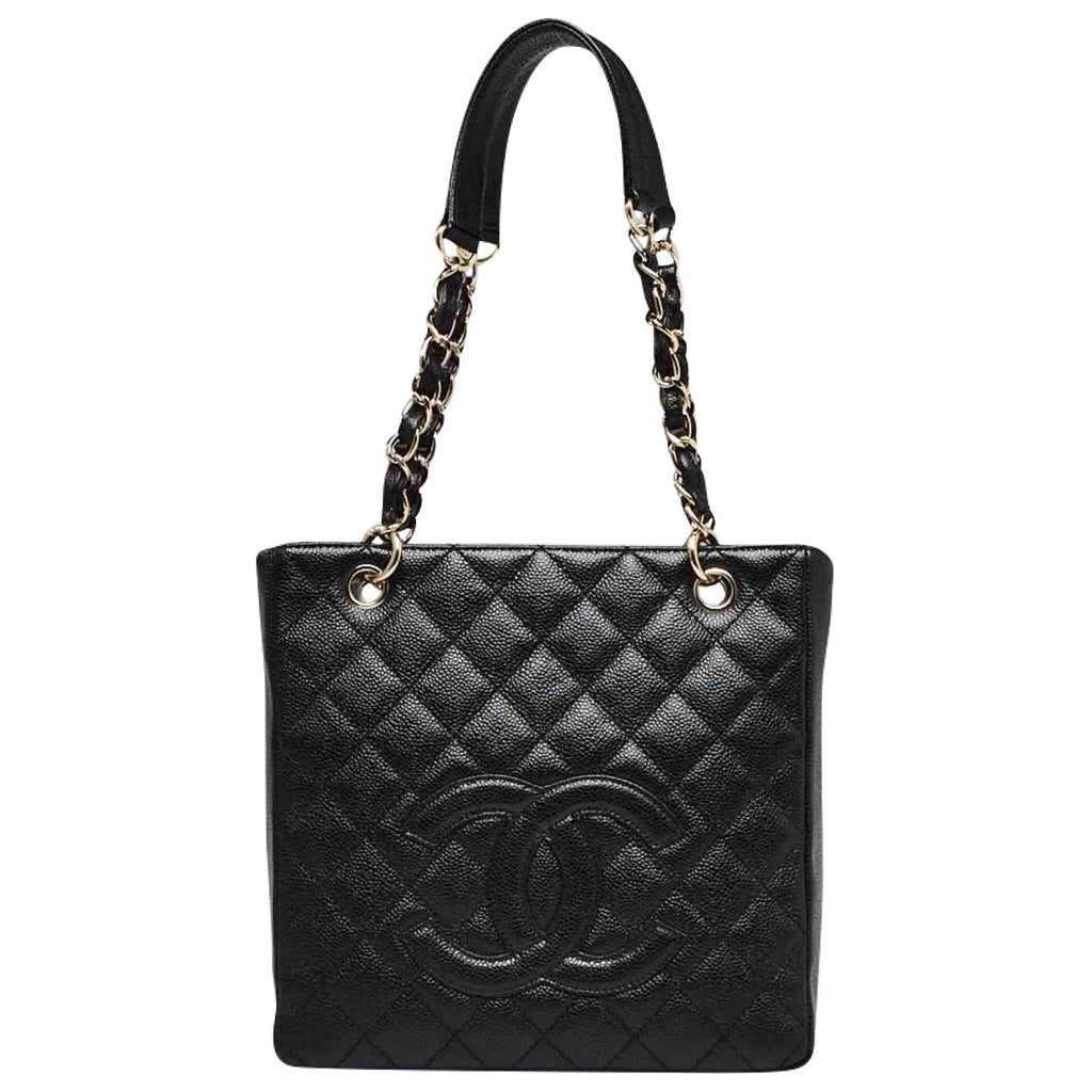 Chanel Petite Shopping Tote Black Leather handbag for women. Used condition.