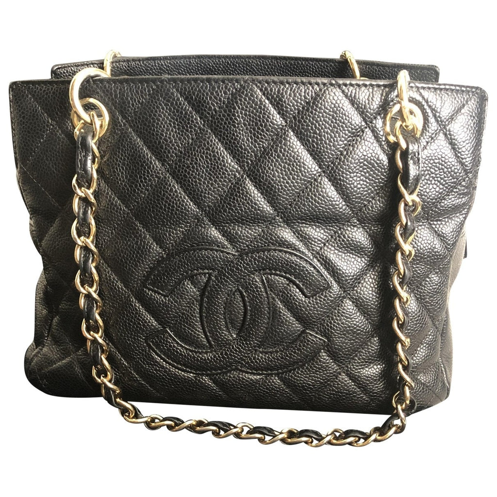Chanel Petite Shopping Tote Black Leather handbag for women. Used condition.
