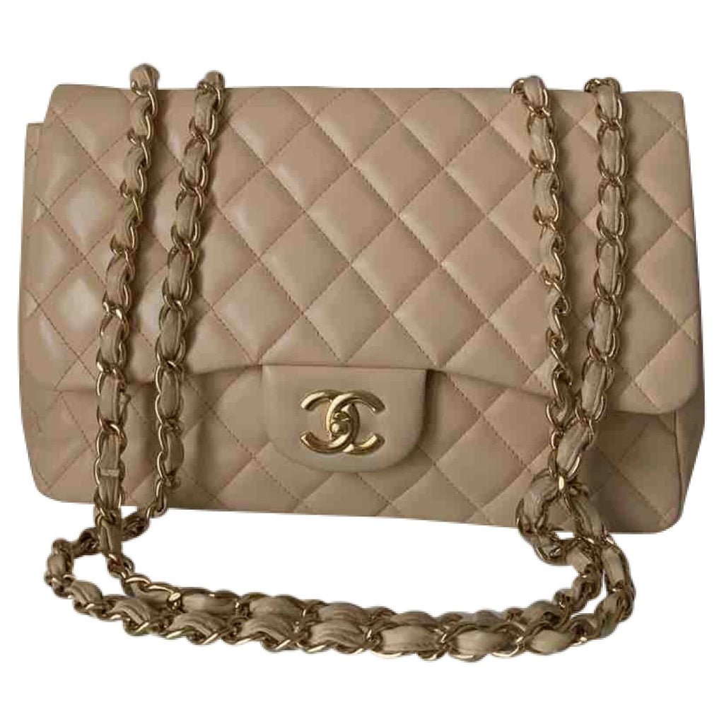 Chanel timeless/classique beige leather handbag