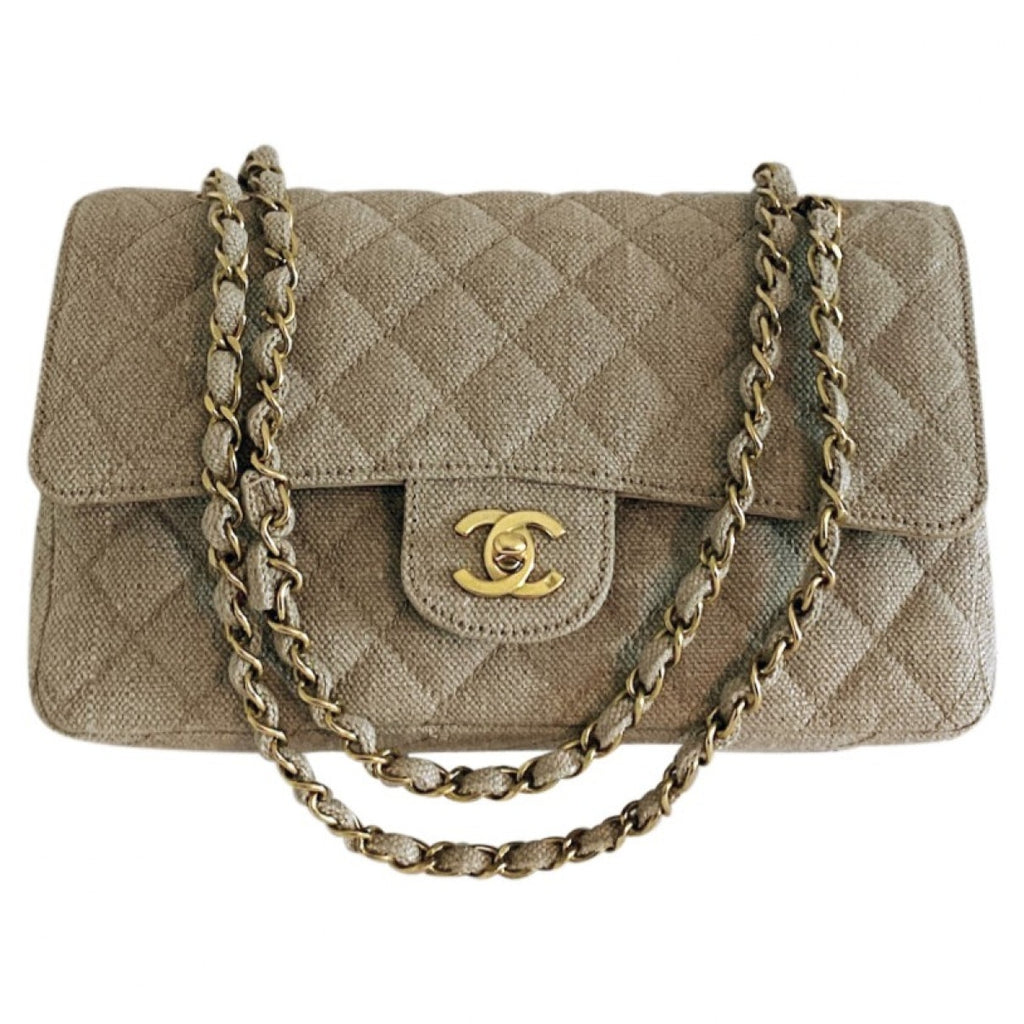 Chanel Timeless/Classique Beige Linen handbag for women. Used condition.