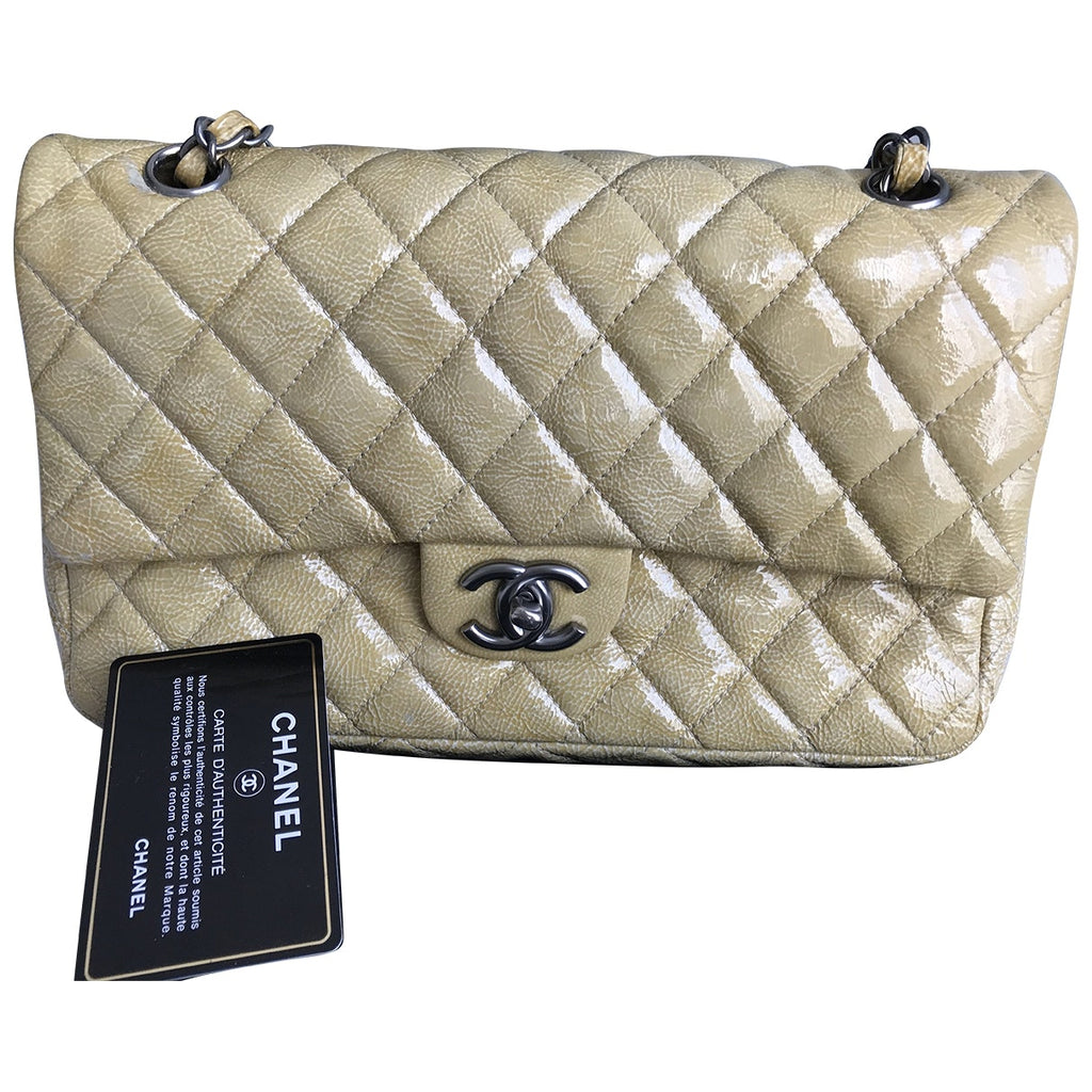 Chanel Timeless/Classique Beige Patent leather handbag for women. Used condition.