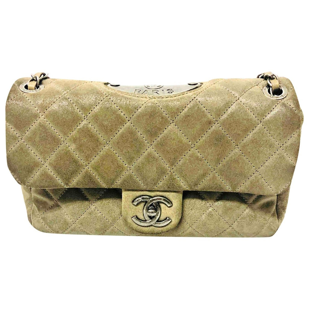 Chanel Timeless/Classique Beige Suede handbag for women. Used condition.