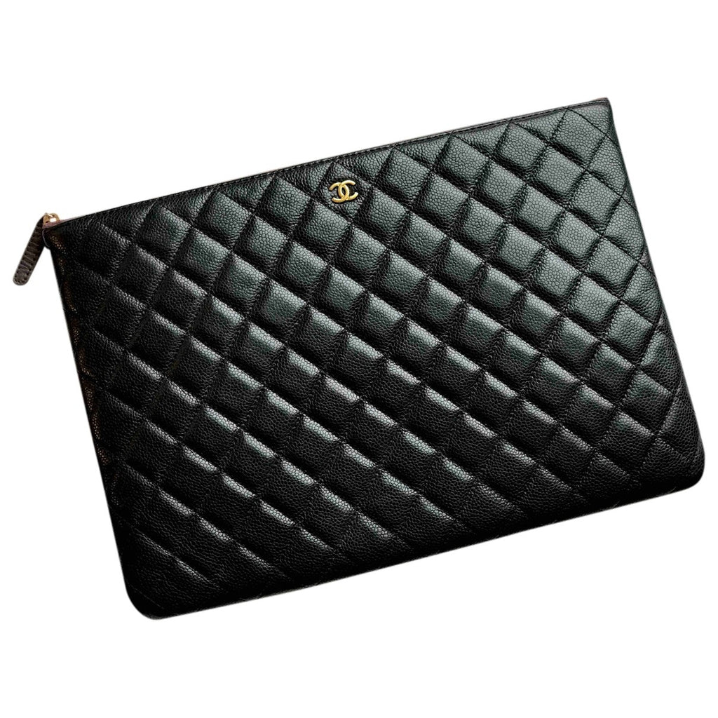 Chanel timeless/classique black leather clutch bag