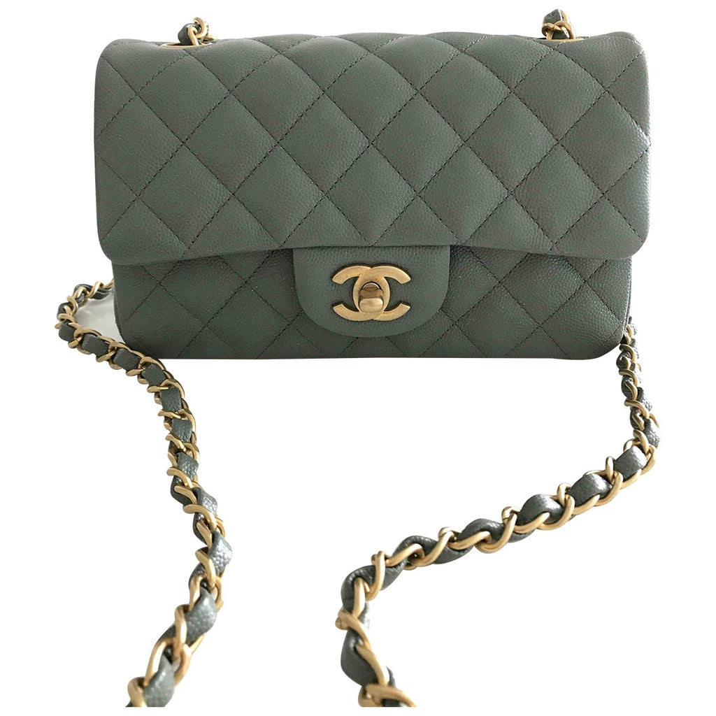 Chanel timeless/classique green leather handbag