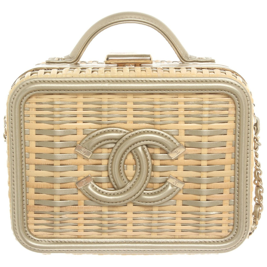Chanel vanity beige wicker handbag