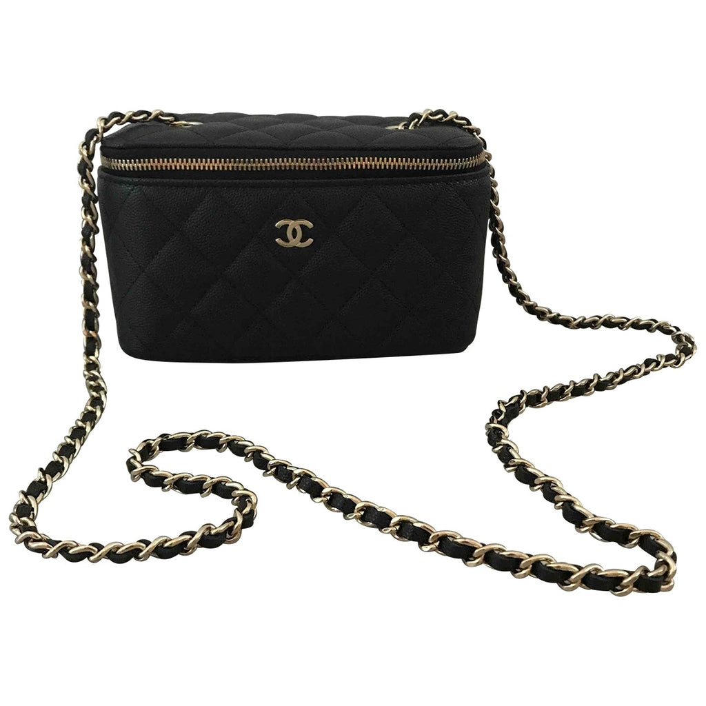 Chanel Vanity Black Leather handbag for women. Used condition.