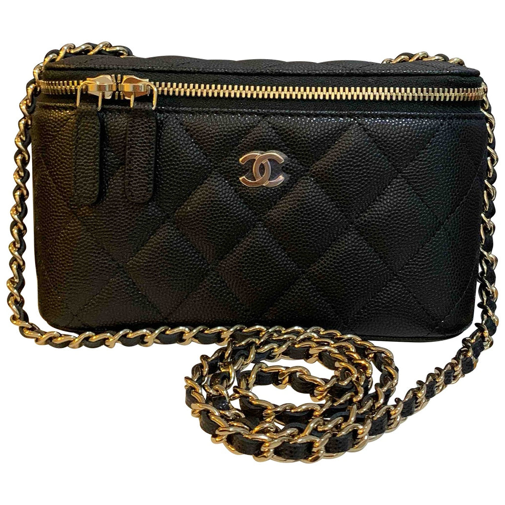 Chanel Vanity Black Leather handbag for women. Used condition.