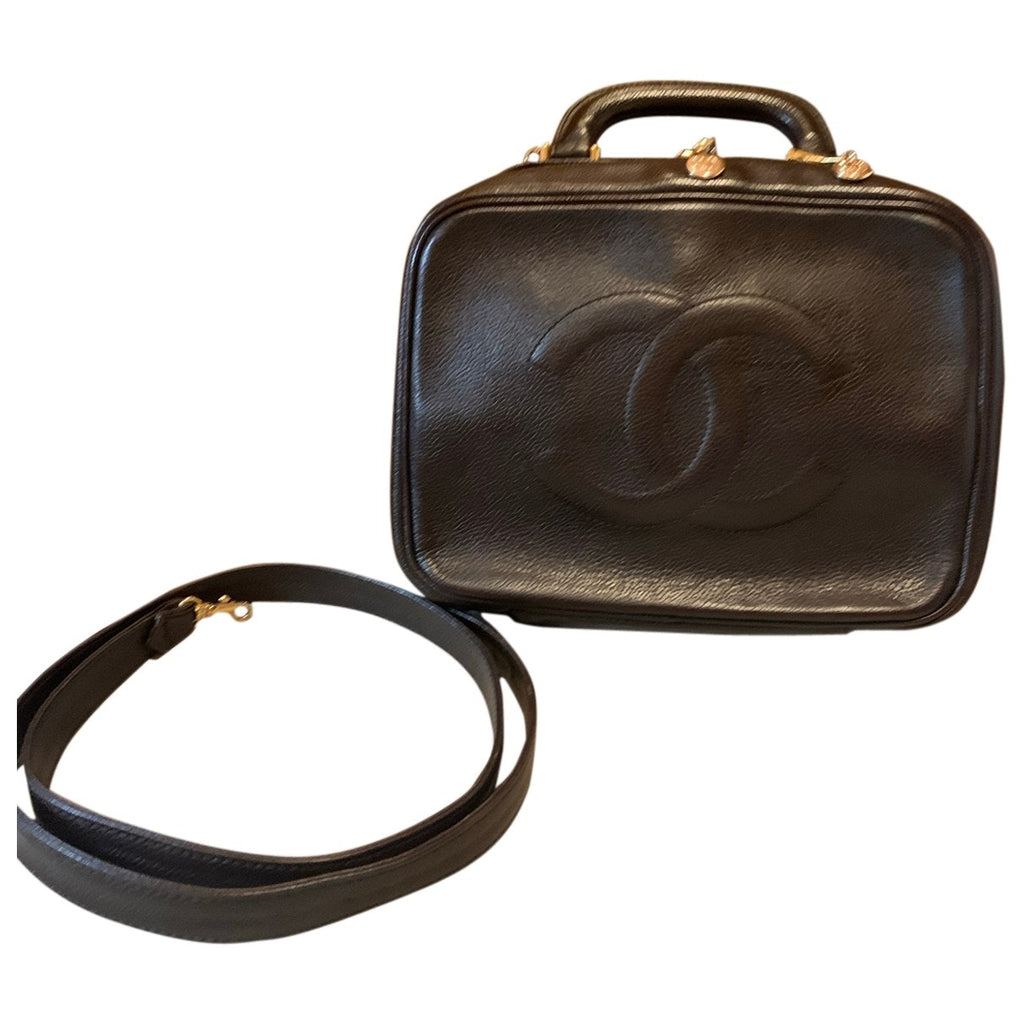 Chanel vanity brown leather handbag