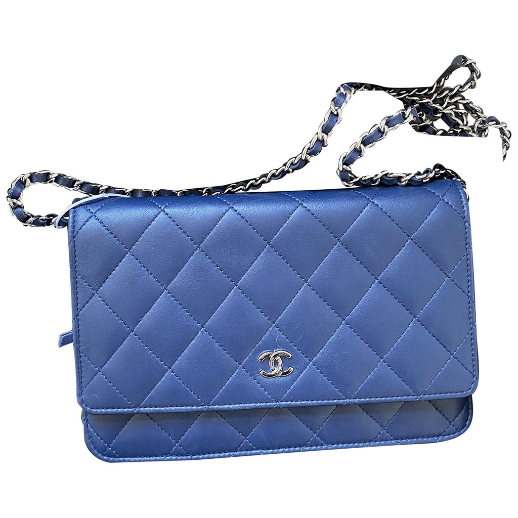 Chanel Wallet on Chain Blue Leather handbag for women. Used condition.