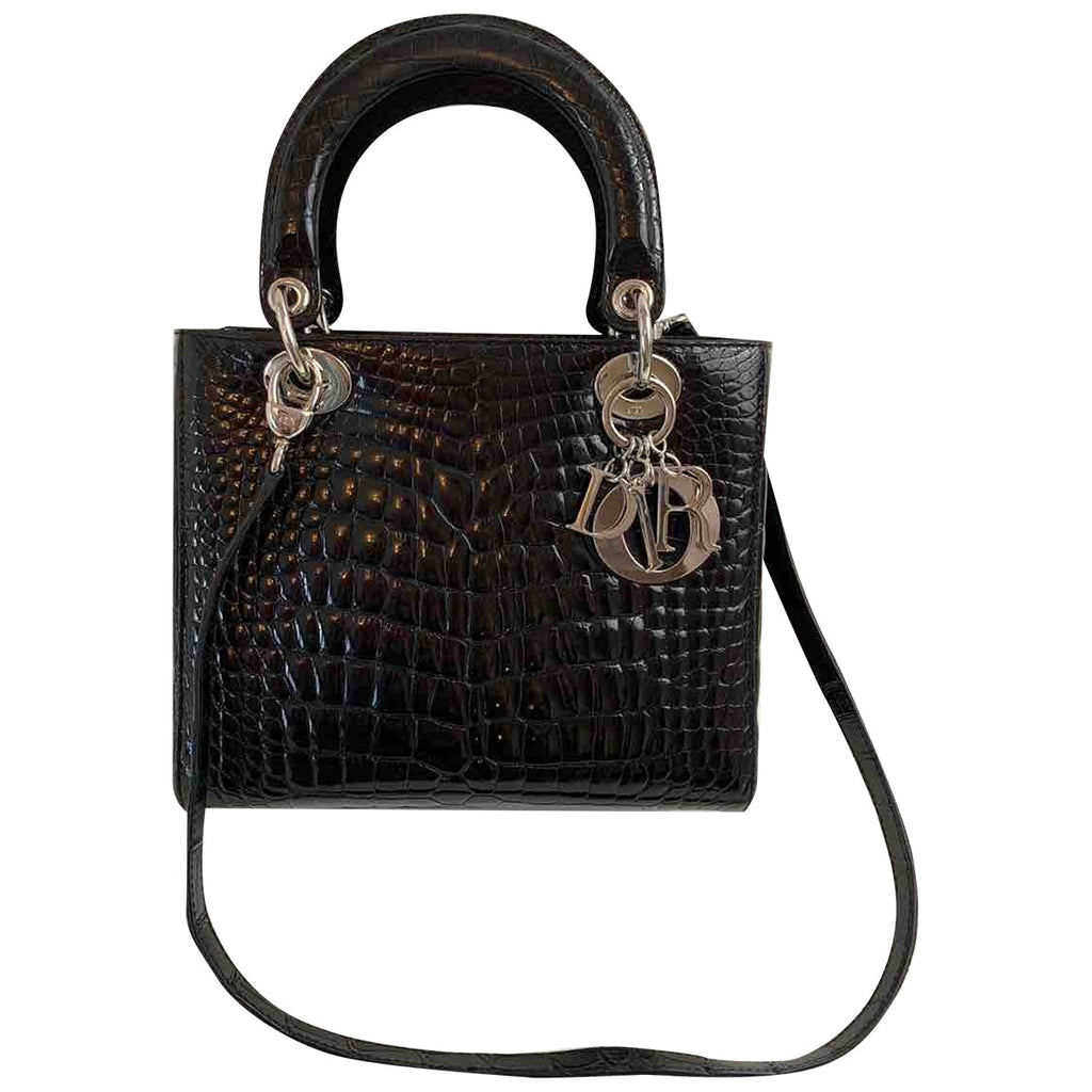 Dior Lady Dior Black Crocodile handbag for women. Used condition.