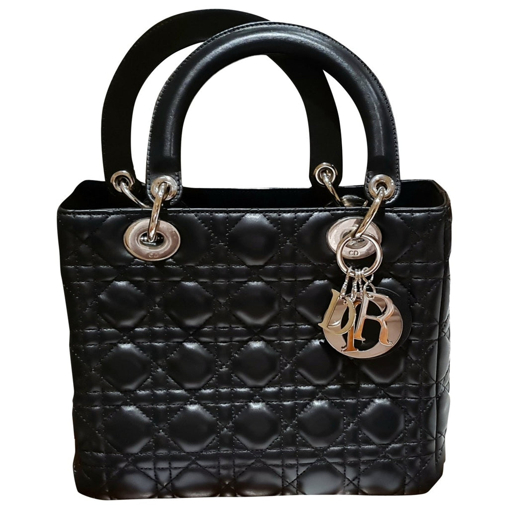 Dior Lady Dior Black Leather handbag for women. Used condition.