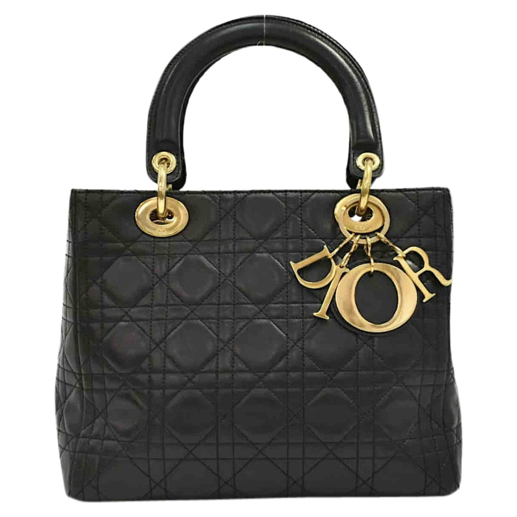 Dior Lady Dior Black Leather handbag for women. Used condition.