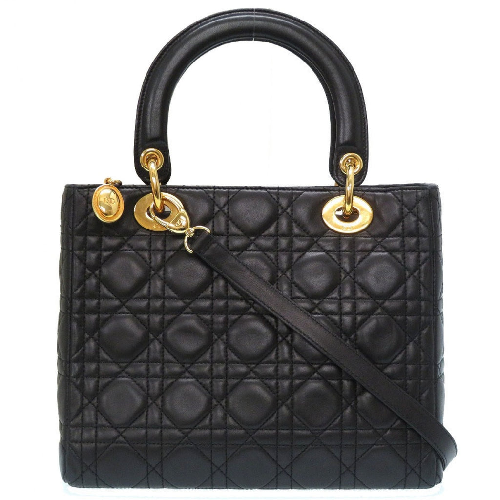 Dior Lady Dior Black Leather handbag for women. Used condition.