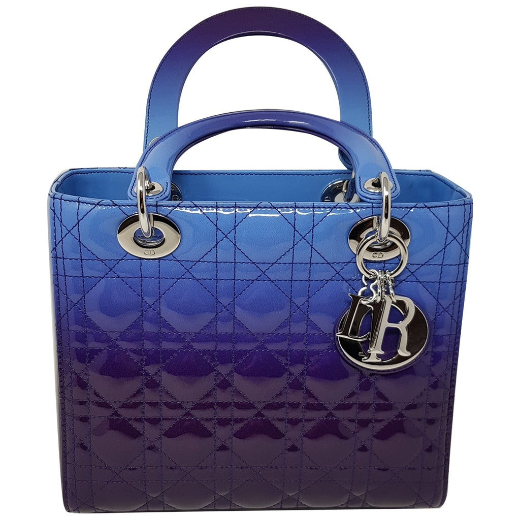 Dior lady dior blue patent leather handbag