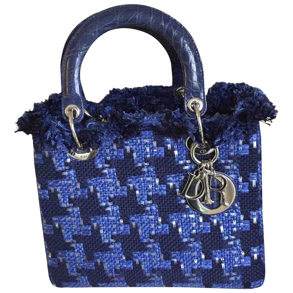 Dior Lady Dior Blue Tweed handbag for women. Used condition.