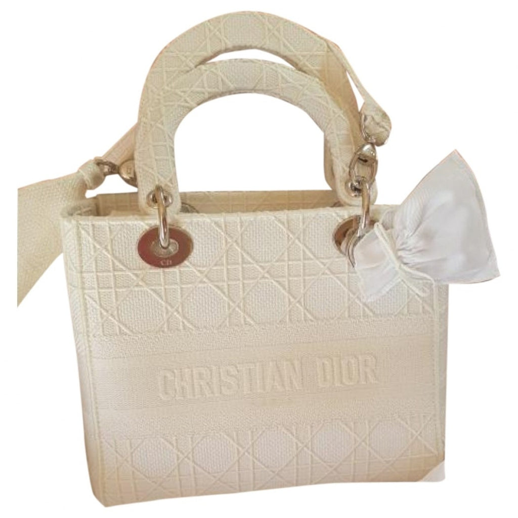 Dior Lady Dior Ecru Cloth handbag for women. Used condition.