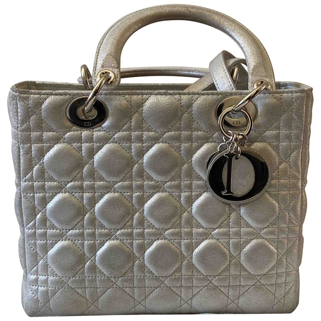Dior Lady Dior Silver Leather handbag for women. Used condition.