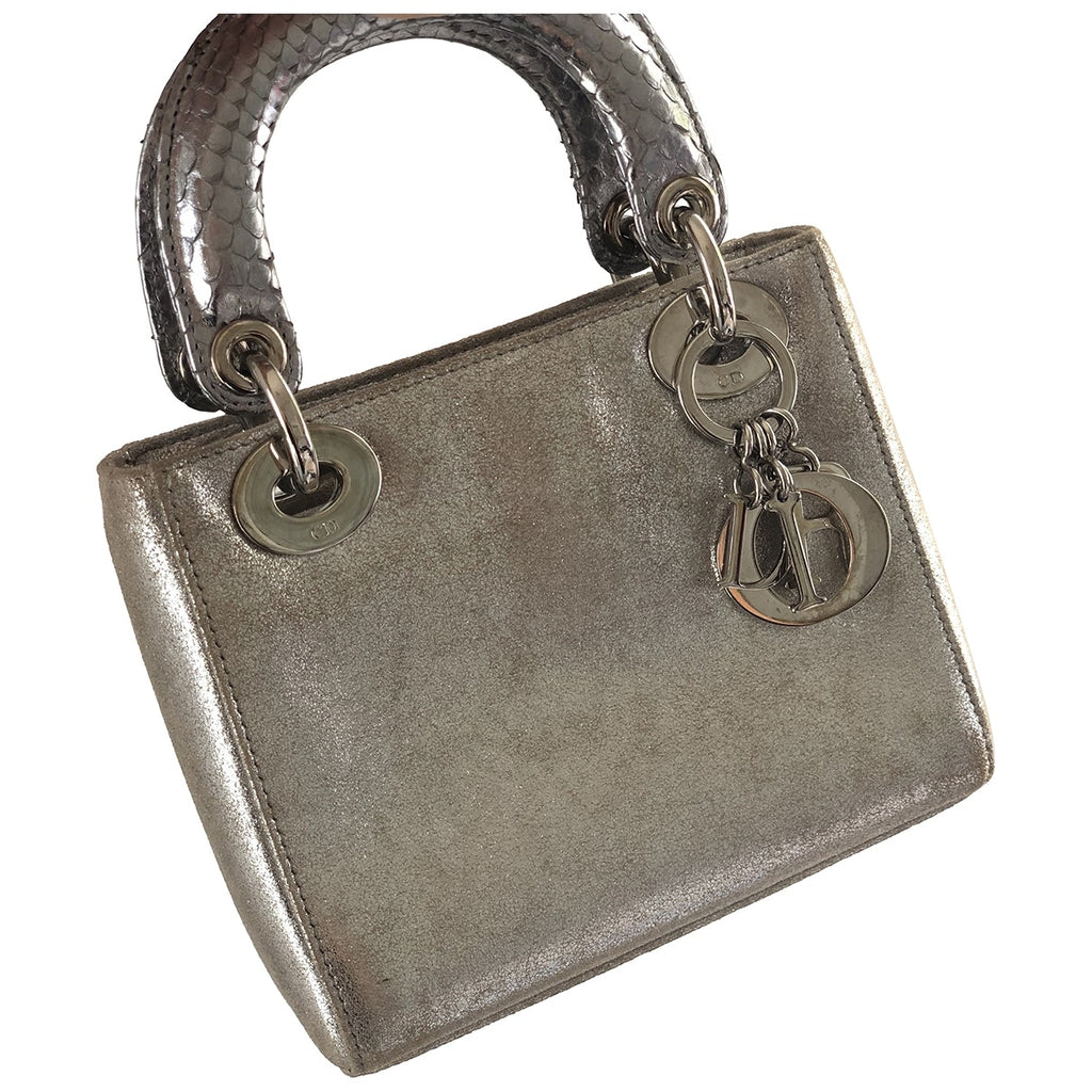 Dior Lady Dior Silver Leather handbag for women. Used condition.