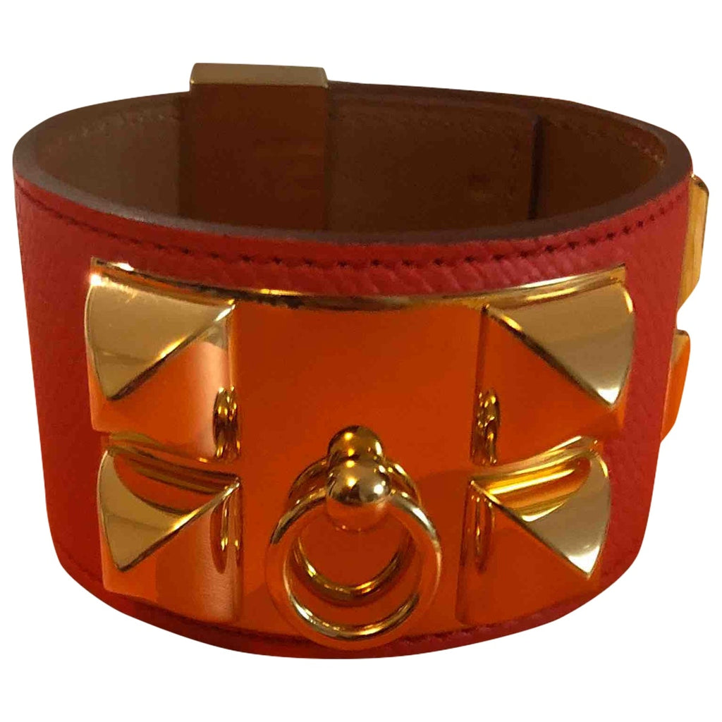 Hermès Collier de chien Orange Leather bracelets for women. Used condition.