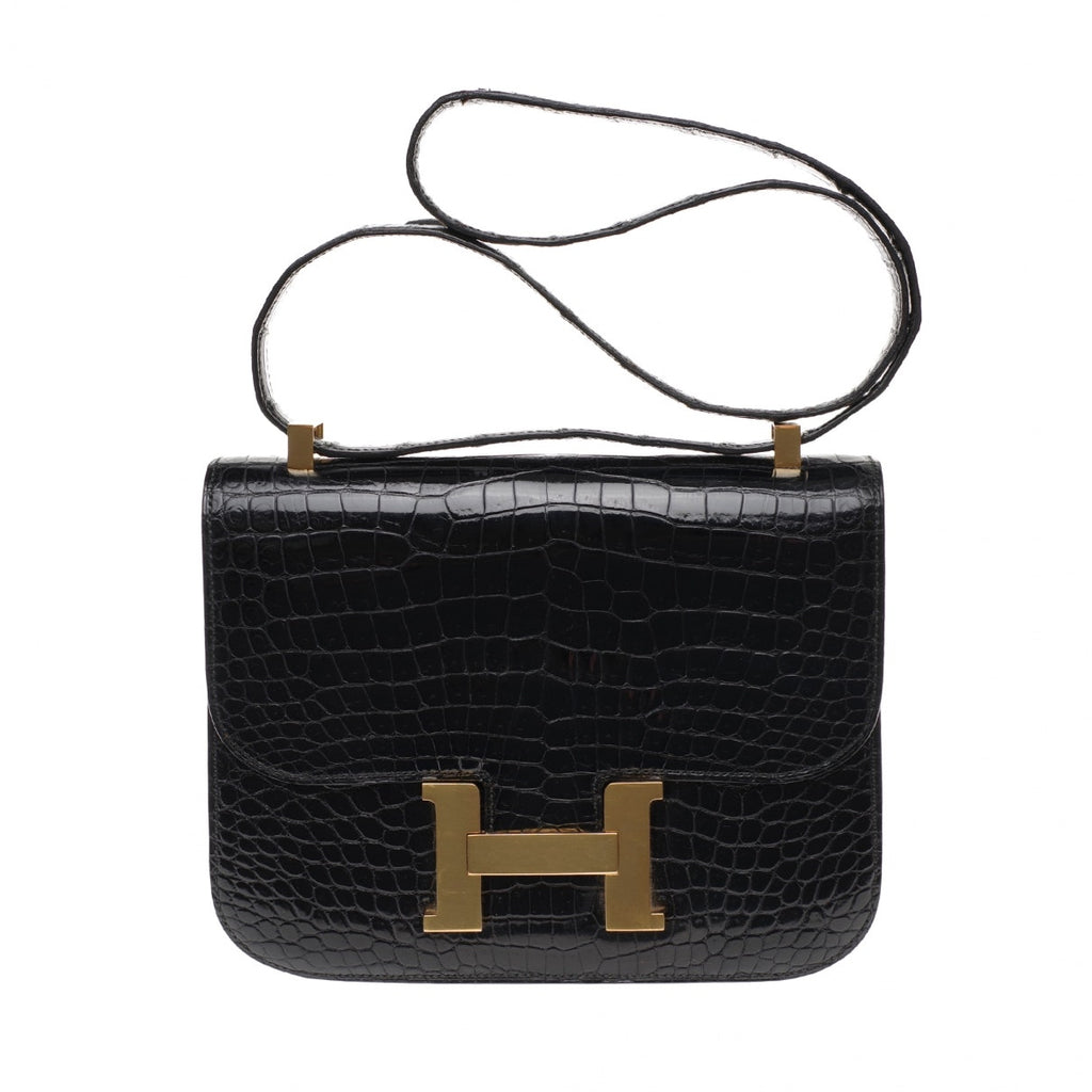 Hermès Constance Black Crocodile handbag for women. Used condition.