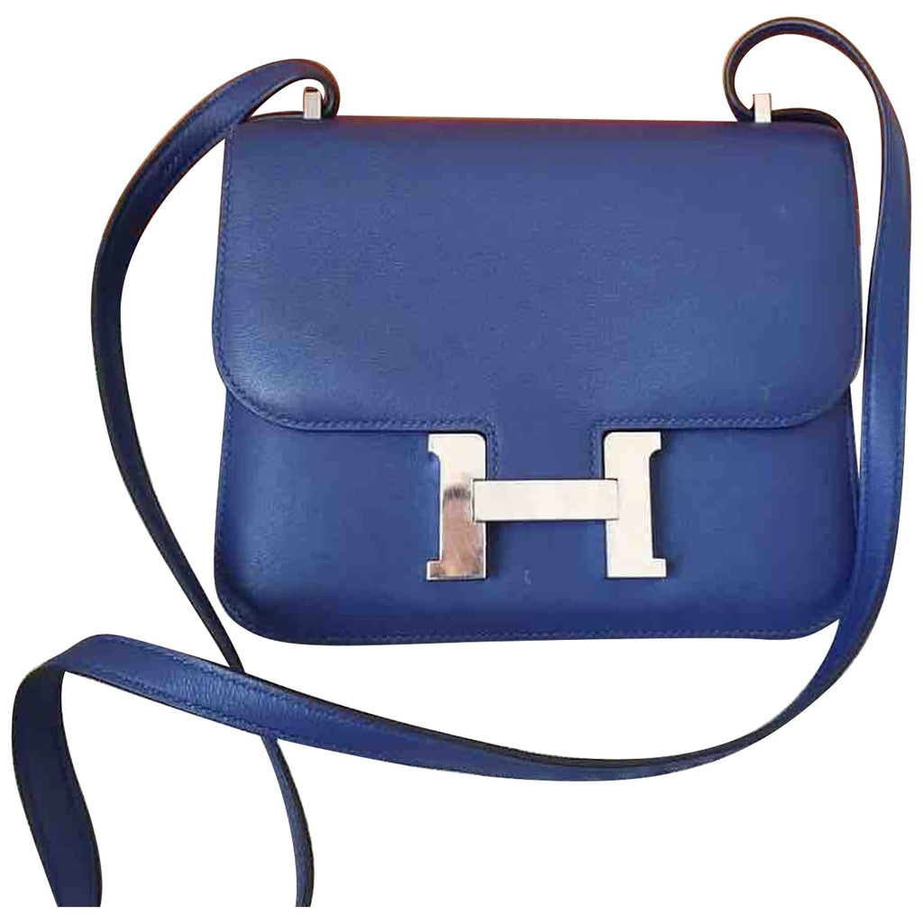 Hermès constance blue leather handbag