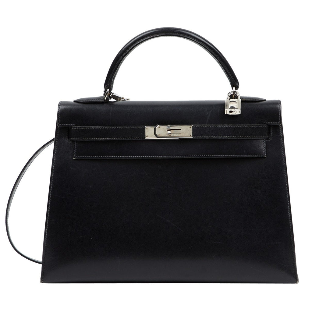 Hermès Kelly 32 Black Leather handbag for women. Used condition.