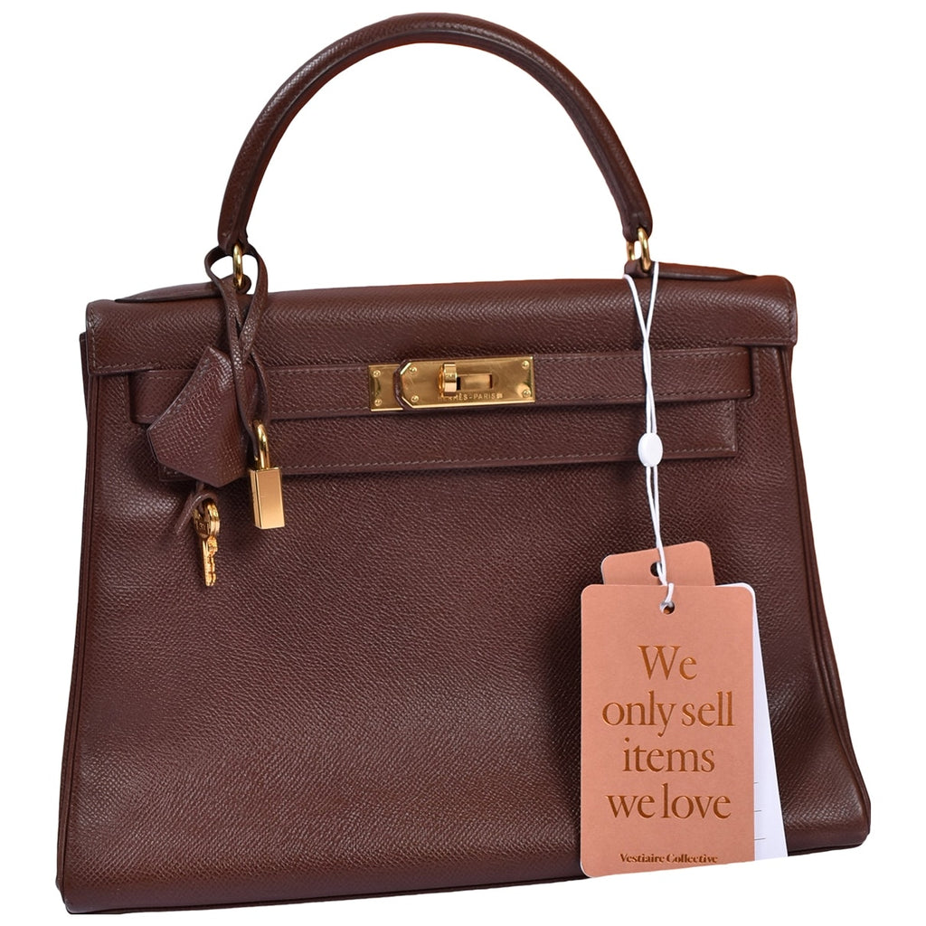 Hermès Kelly 32 Brown Leather handbag for women. Used condition.