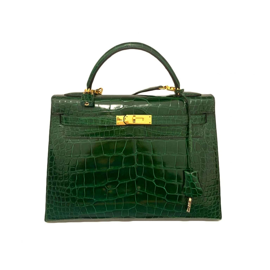 Hermès Kelly 32 Green Crocodile handbag for women. Used condition.