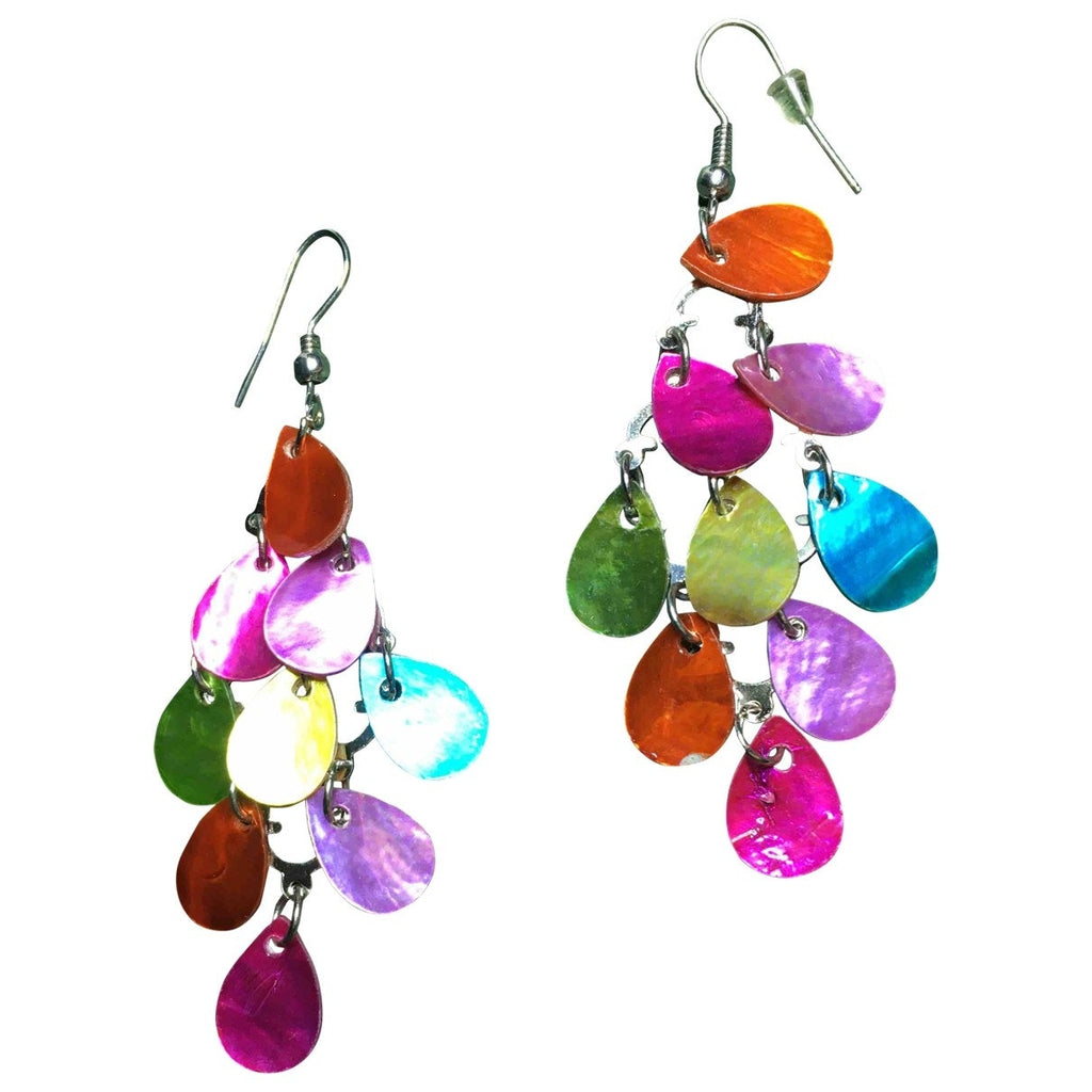 Non Signé / Unsigned Multicolour Horn earrings for women. Used condition.