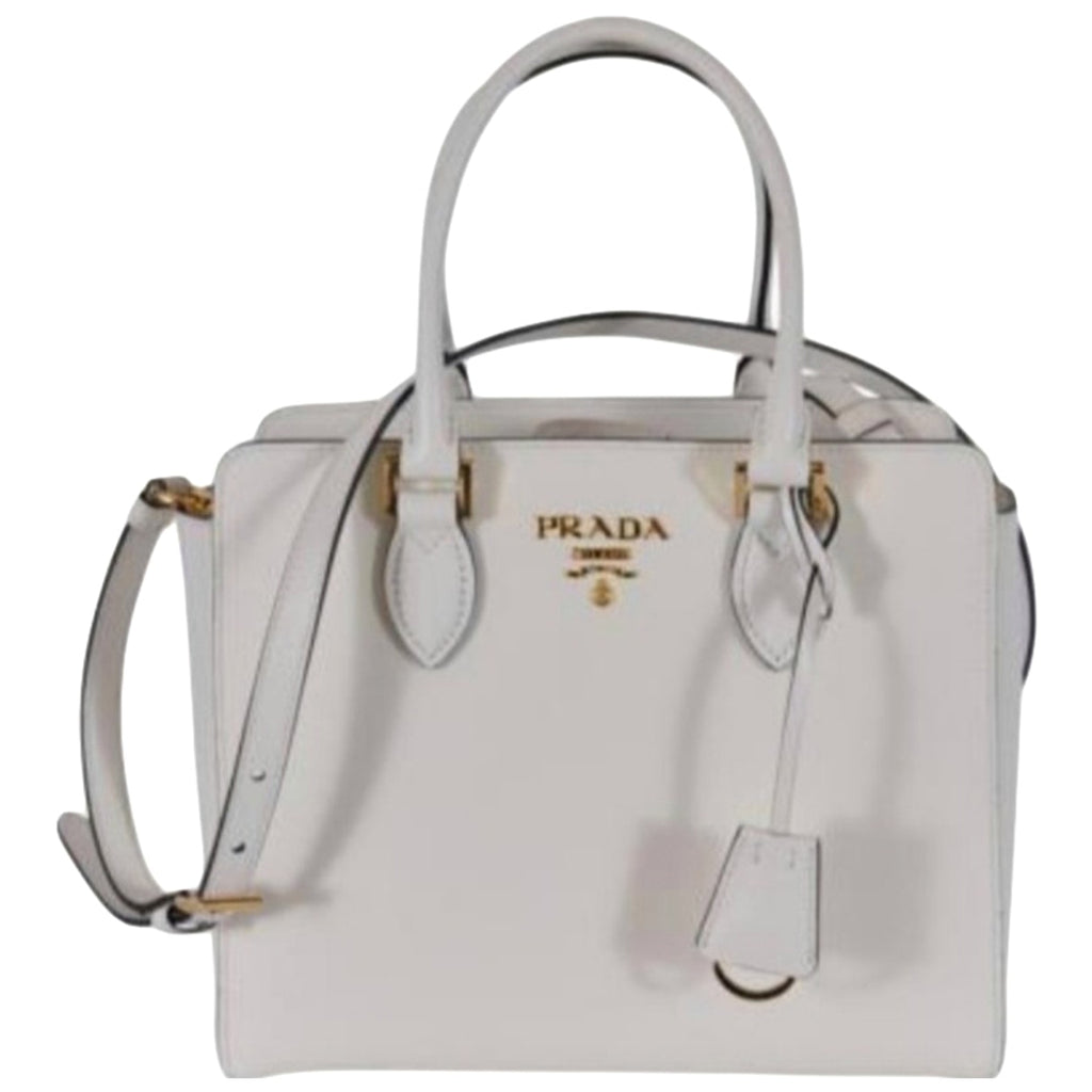 Prada Bibliothèque White Leather handbag for women. Used condition.