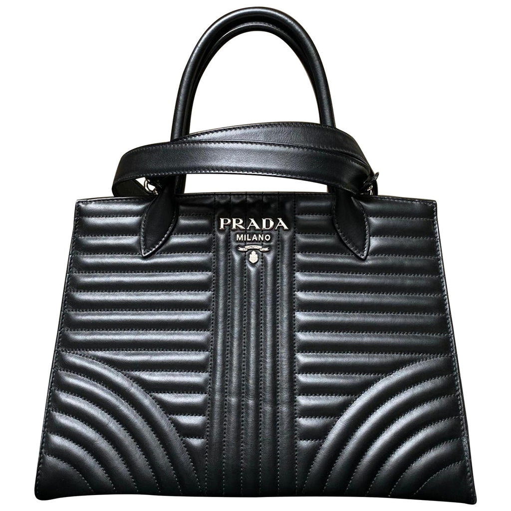 Prada Diagramme Black Leather handbag for women. Used condition.