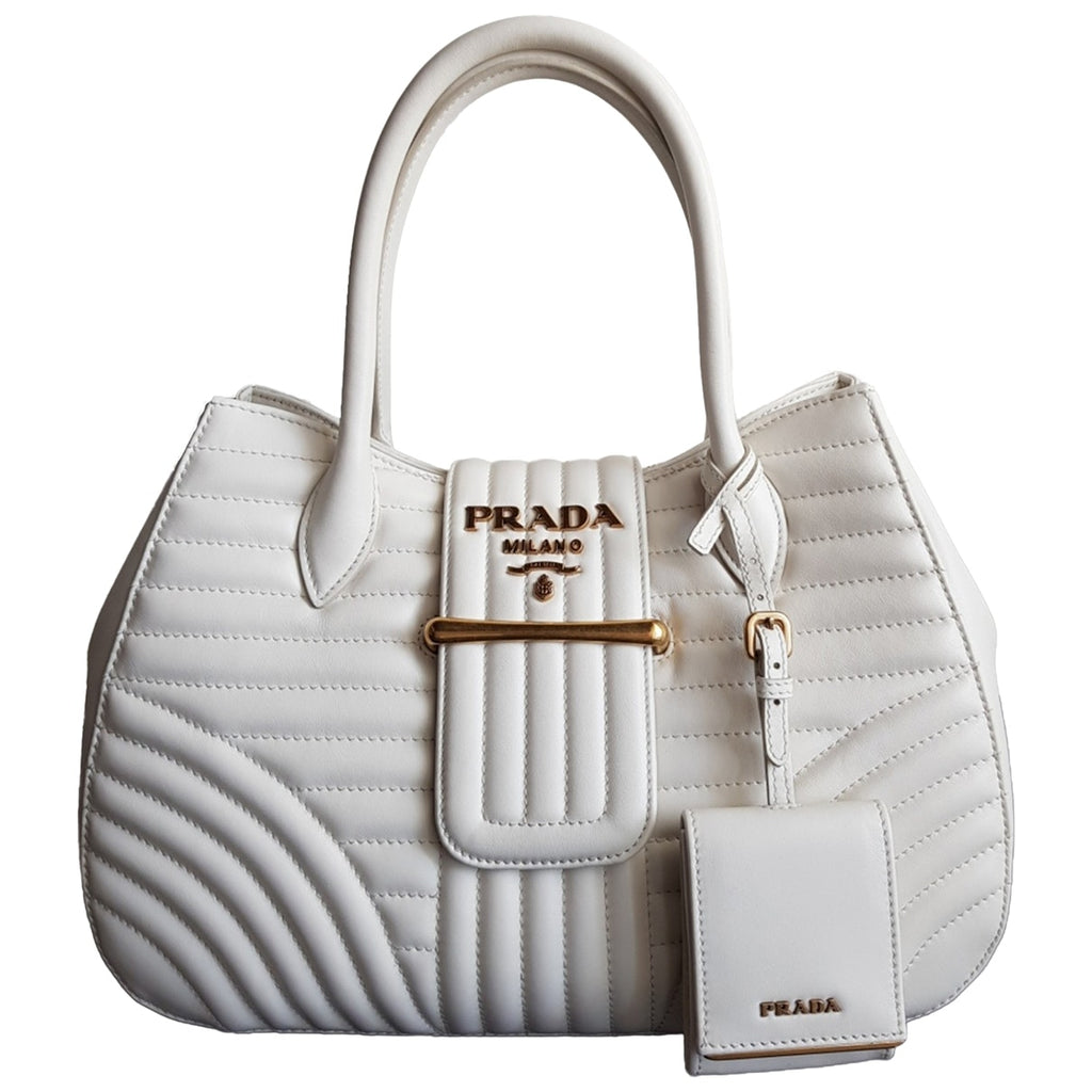 Prada Diagramme White Leather handbag for women. Used condition.