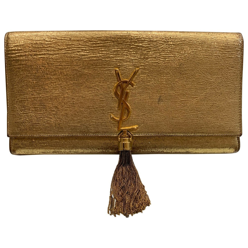 Saint Laurent Pompom Kate Gold Leather clutch bag for women. Used condition.