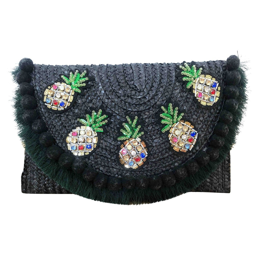 Uterque black wicker clutch bag