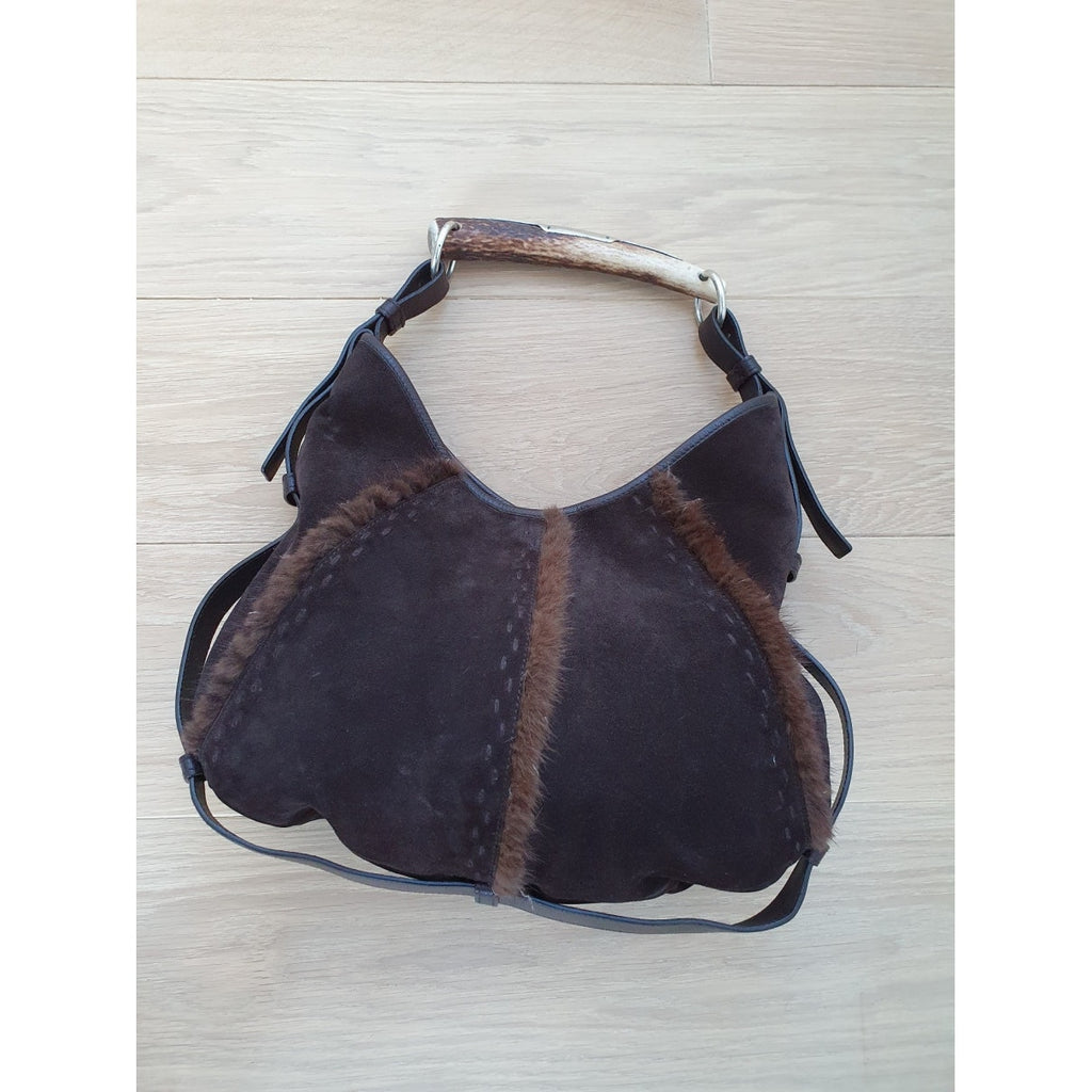 Yves Saint Laurent mombasa brown fur handbag
