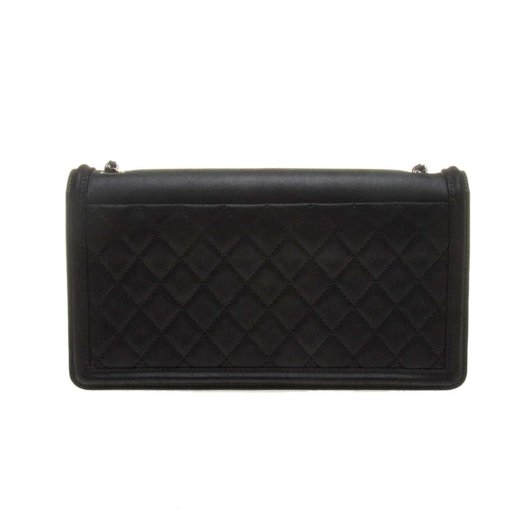 Chanel Black Velvet Calfskin Boy Brick Horizontal Chain Bag