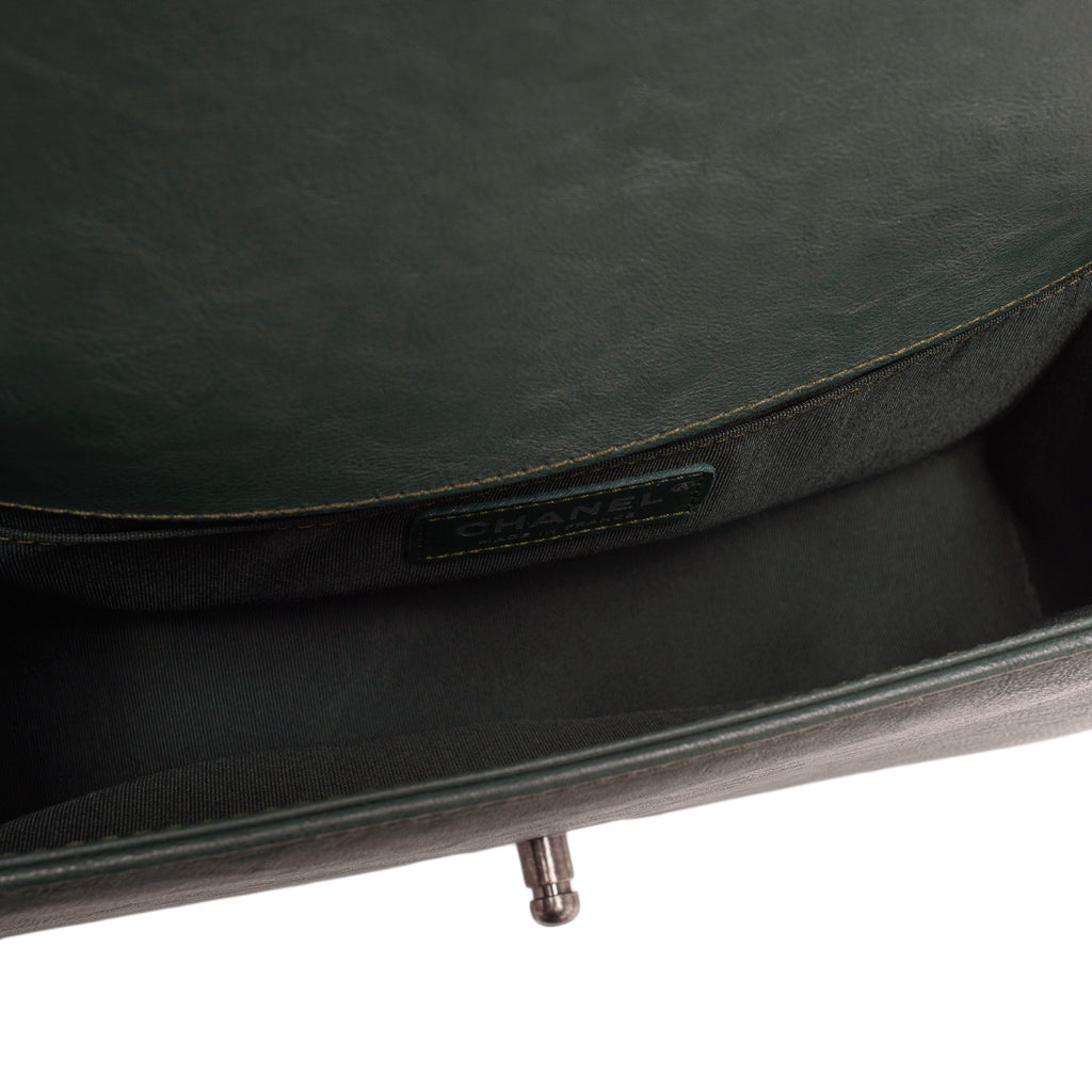 Chanel Paris In Rome Metiers d'Art Medium Boy bag with a handle of dark green calfskin with ruthenium hardware.
